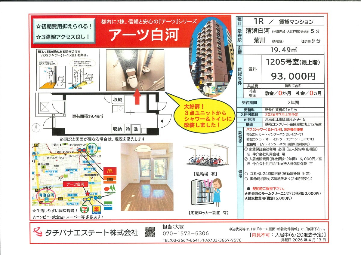 新着物件情報更新(現在の募集物件を載せています) new arrivals