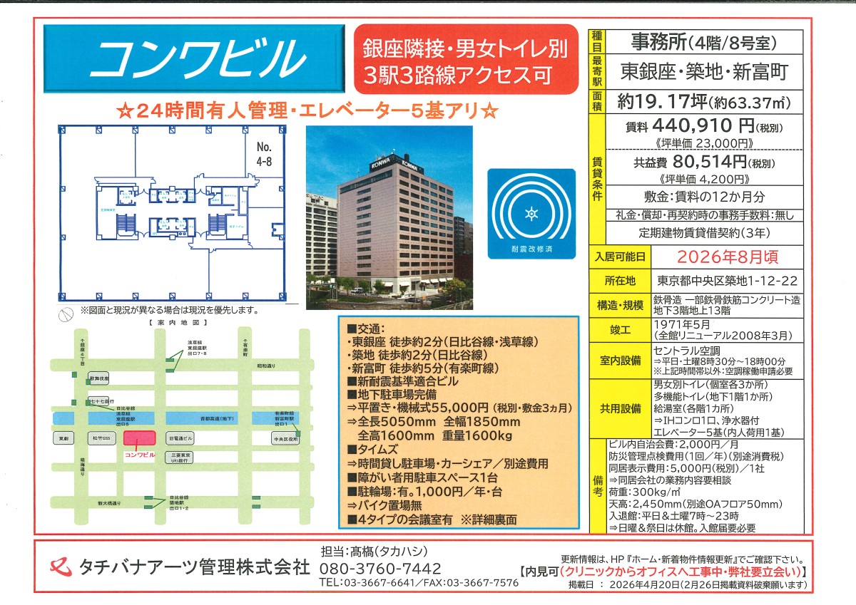 【担当髙𣘺(タカハシ)】コンワビル 4階-B室